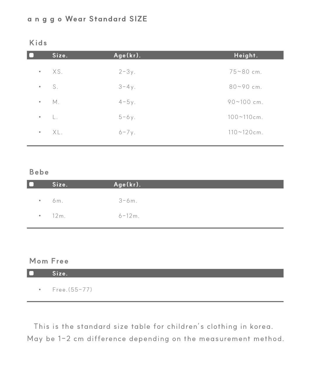 size:XS / S / M / L / XL
