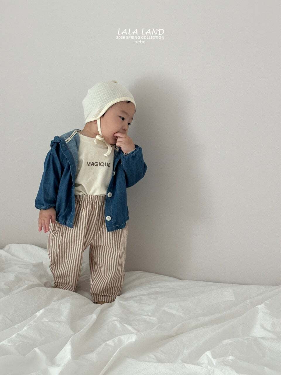 予約《LALALAND》[baby]Denim shirring hood