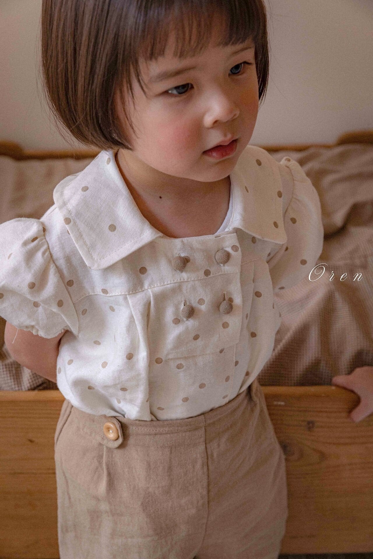 ✔予約《OREN》Noe double button tops&bottom set(dot)(bebe)